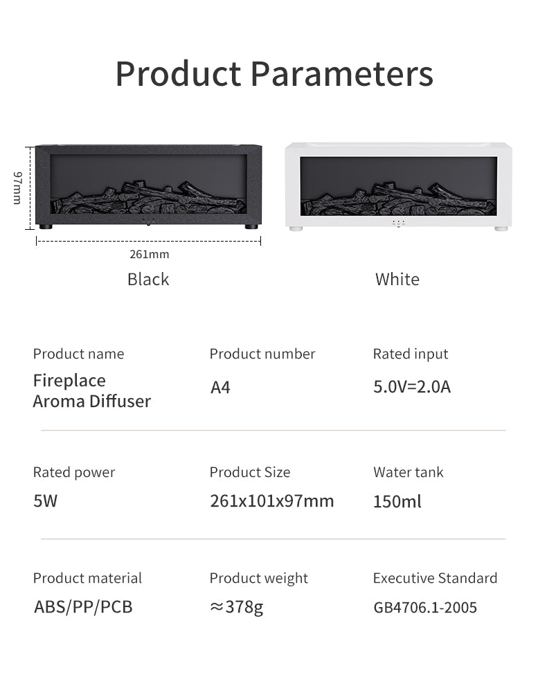 Fireplace Flame Effect Aromatherapy Diffuser – Ultrasonic Essential Oil Humidifier
